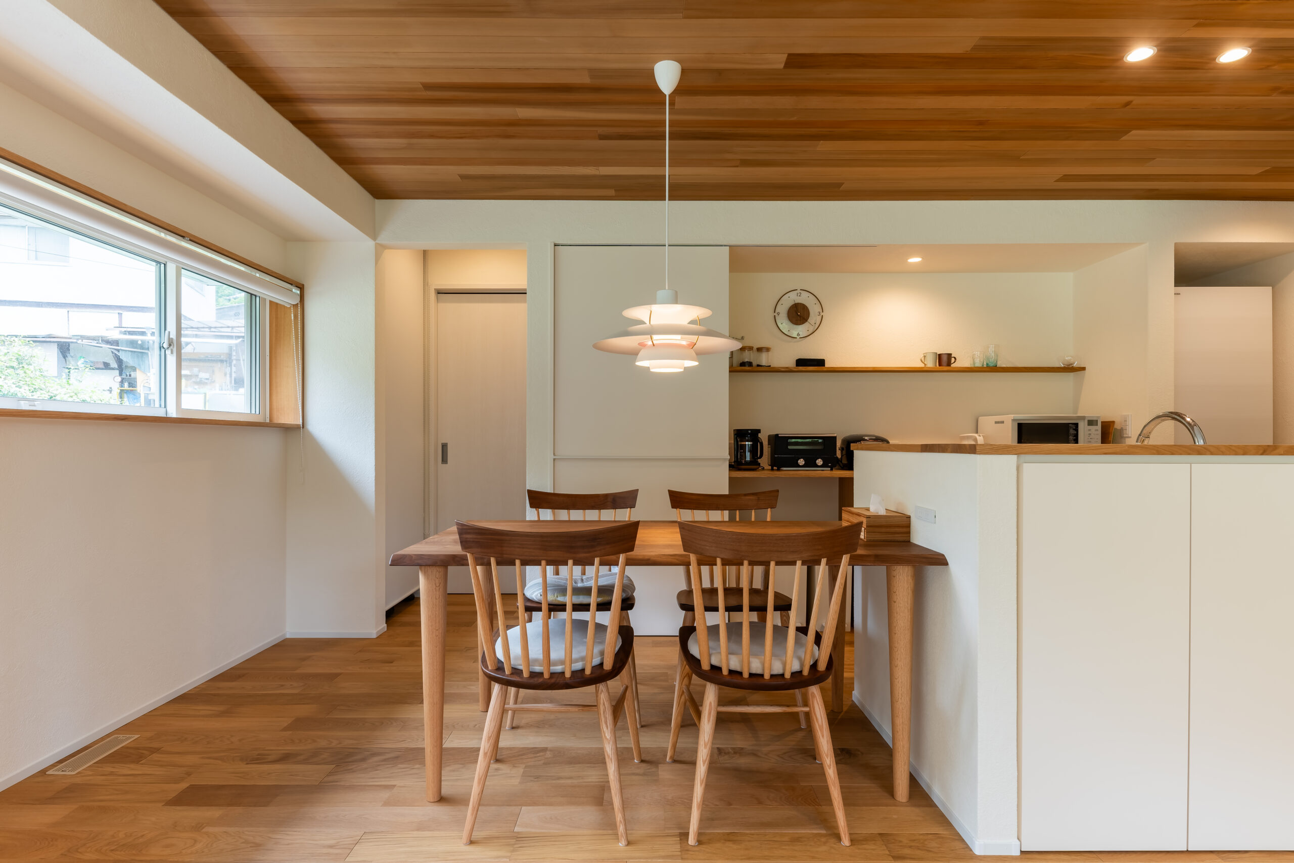 キッチンやダイニングには、外の様子をさりげなく感じられる窓を。