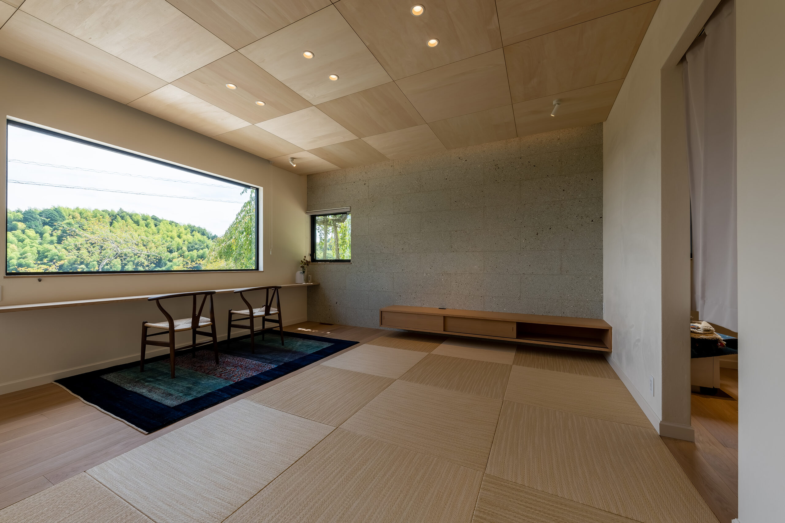 くつろぎの場所には、視線が抜けすぎない、落ち着いた窓を。