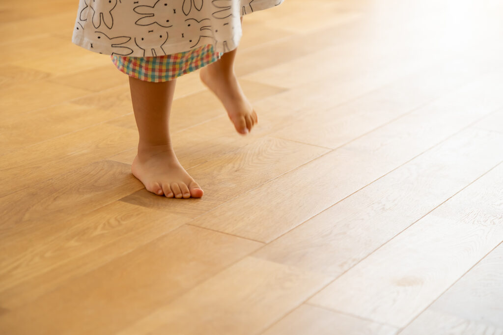 素足で歩くと心地よく、安心して暮らせる天然木