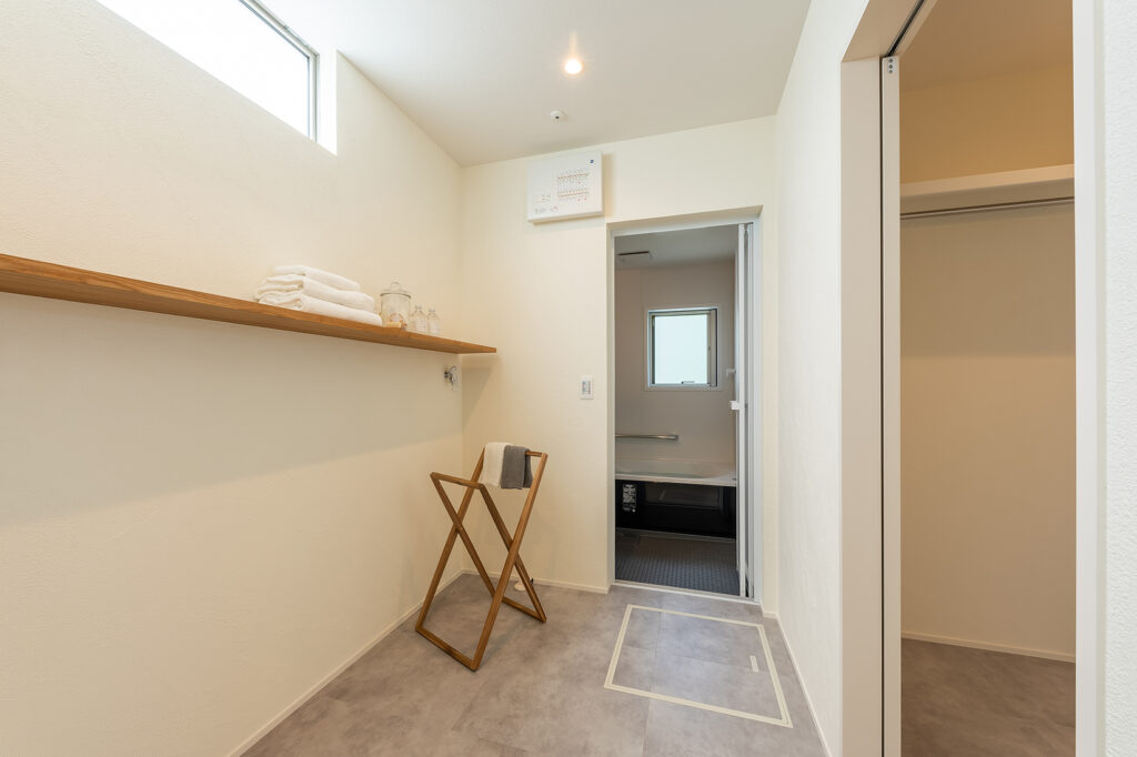 キッチンから洗面、ランドリー、そして収納へ。