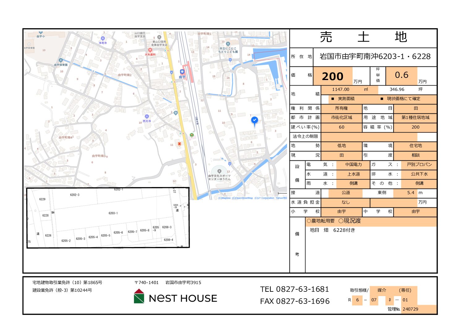 岩国市由宇町南沖1丁目【売地】